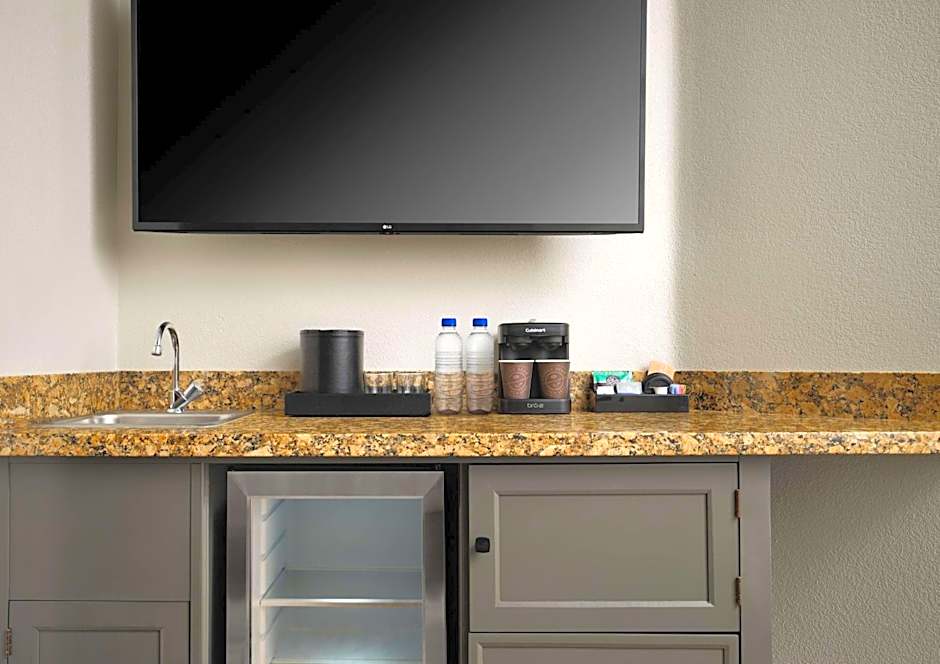Features include an LCD TV with on-demand movies, and a marble bathroom.